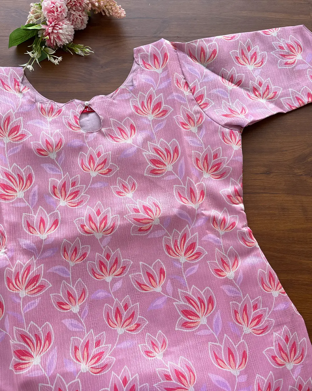 Designed with a cotton lining attached, it ensures all-day comfort without compromising on style. The refined finish of the fabric highlights its rich texture, while the soothing Rose Mist hue adds a touch of sophistication to your wardrobe.