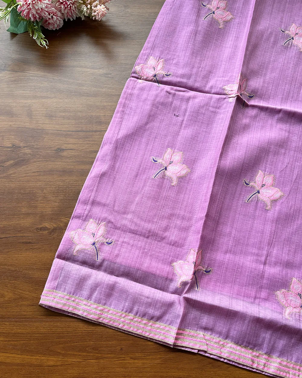 Bring home timeless elegance with this premium Chanderi kurta set in a graceful orchid colour. Crafted from luxurious Chanderi fabric, this ensemble offers a subtle sheen and lightweight comfort, making it perfect for festive occasions and elegant gatherings. The kurta comes with a soft cotton lining attached, ensuring breathability and a smooth fit throughout the day.